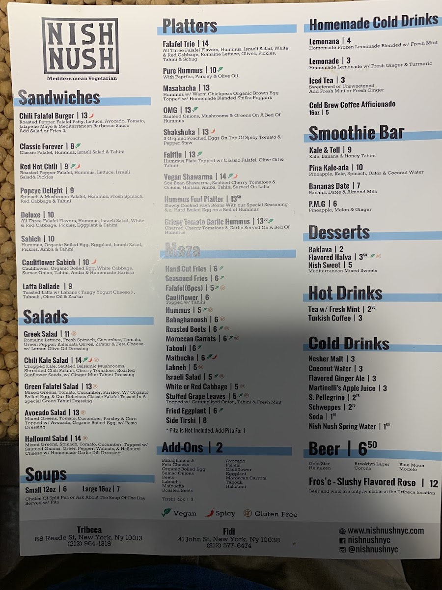 Welcome to Nish Nush - NY 10038, a vibrant Mediterranean eatery nestled in the heart of New York’s Financial District. This kosher and vegan-friendly restaurant offers a mouthwatering menu that delights both health-conscious diners and lovers of bold flavors.